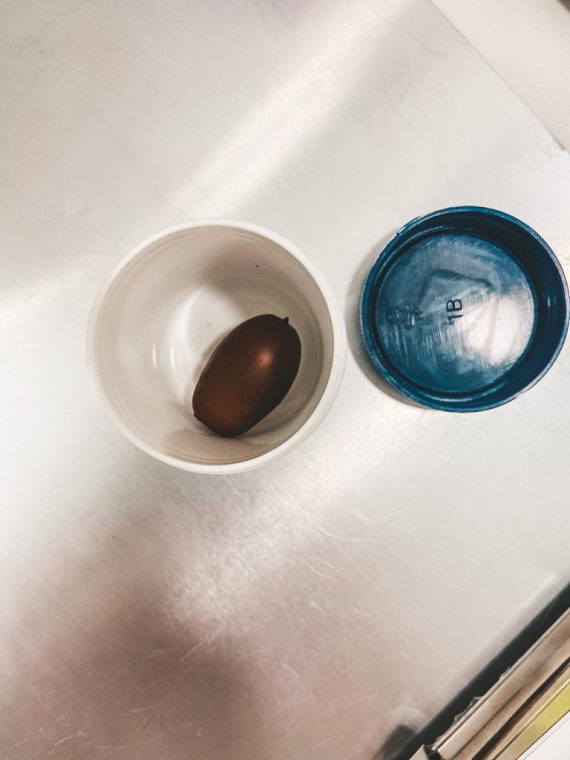 Helaas betekende dit dat Kobus geopereerd moest worden. Er bleek een eikel vastgelopen te zijn in zijn dunne darm. Deze eikel sloot alles af en moest verwijderd worden uit de darm.
